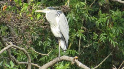 Nun aber raus in die Natur, da sah ich zuerst diesen Fischreiher auf einem Bein im Baum sitzen.