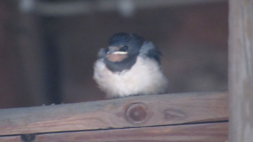 Bleiben wir bei den Schwalben. Eine kleine Schwalbe im Hof hat den letzten Wurf überlebt und kämpft sich ins Leben: