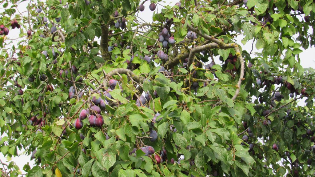 Die Bäume hängen voller Pflaumen.