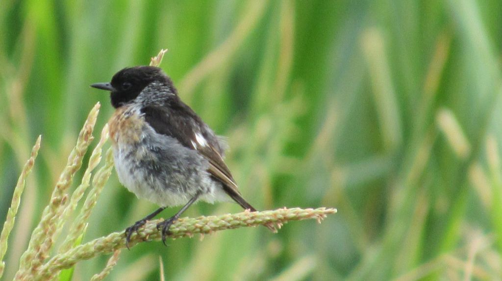 Vor ein paar Tagen sah ich diese junge Schwarzkehlchen. Ist schon eine Seltenheit und dann habe ich es noch vom Fahrrad aus gesehen und es blieb sitzen bis ich es fotografiert hatte. Soviel Glück auf einmal.