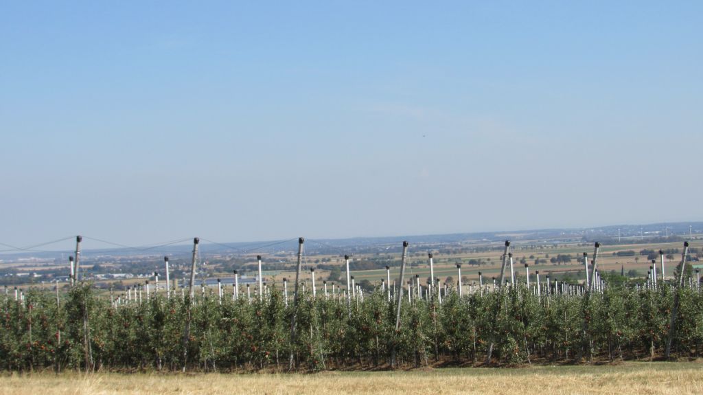 Direkt neben den Apfelplantagen, die schöne rote Äpfel haben.