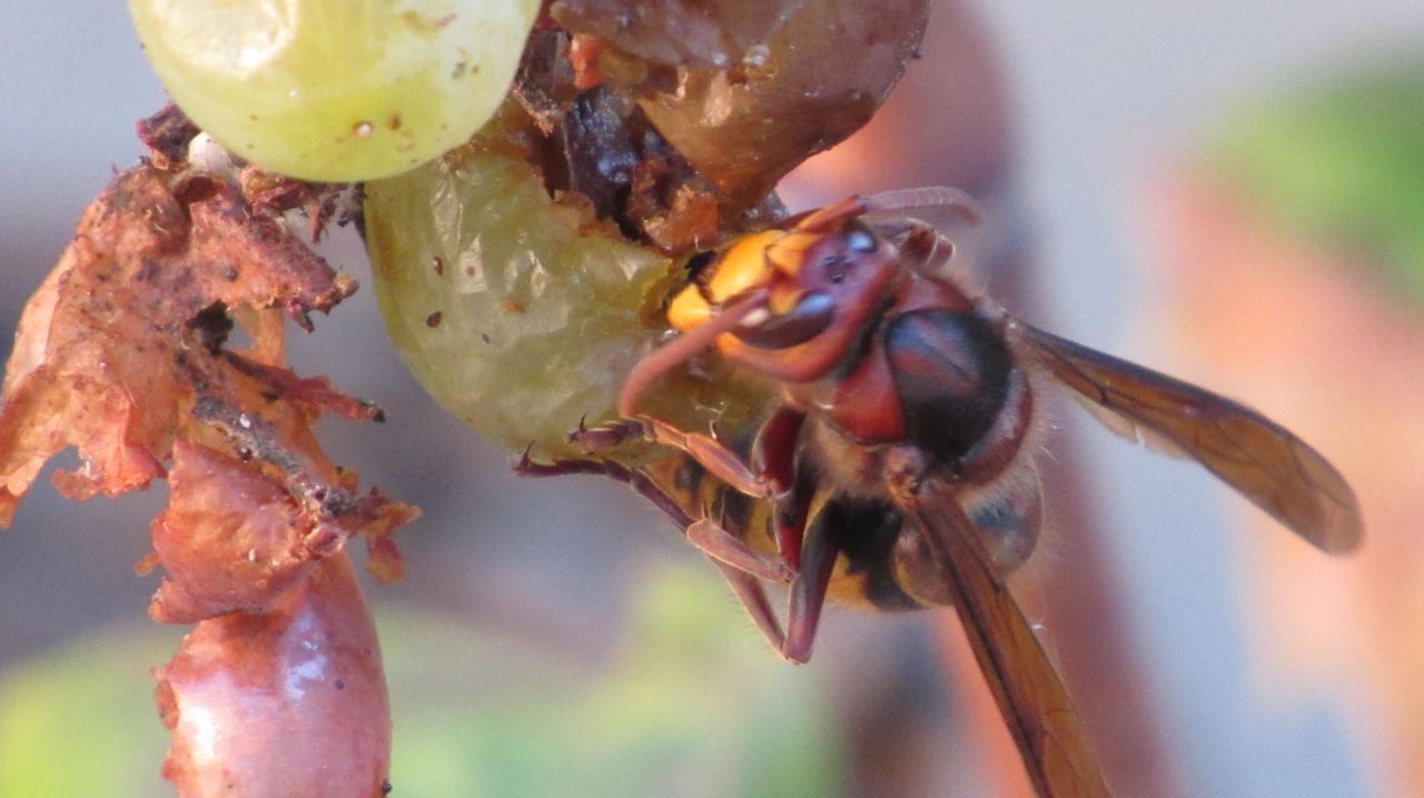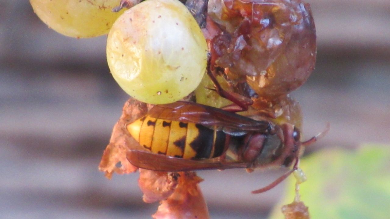 Die Trauben im Hof sind jetzt super süß. Das wissen aber auch die Wespen und vorallem die Hornissen zu schätzen.
