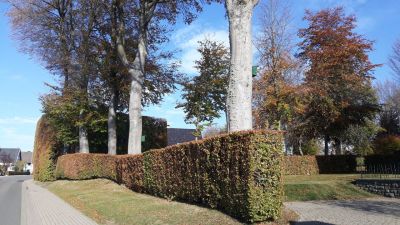 Weiter ging meine Fahrt durch den Ort Höfen. Hier kann man viele haushohe Buchenhecken sehen. Sie boten früher und bieten auch heute noch den Häusern Schutz vor den Westwinden.