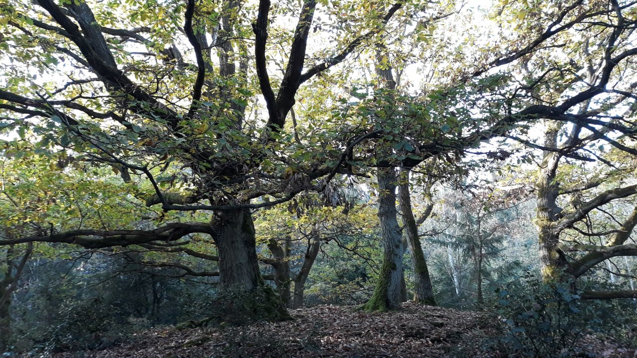 Aber es gibt auch immergrüne Pflanzen im Wald, sogar mit roten Beeren, der Ilex. Davon wächste hier viel.